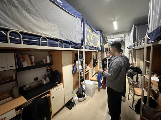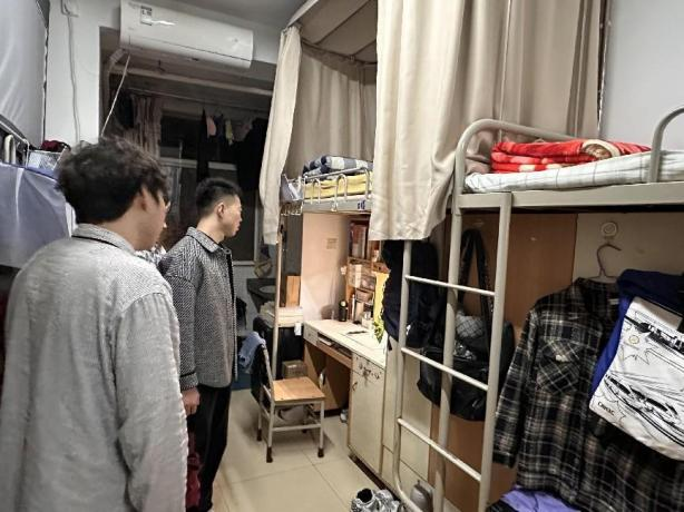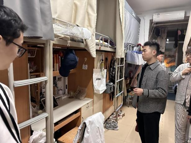 柴江着重检查了是否有大功率违规电器和私拉乱接电线问题,查看电器的使用是否规范,插排有无老化等安全隐患。同时,他还叮嘱学生要注意宿舍用电用水安全,严格遵守宿舍安全守则。
