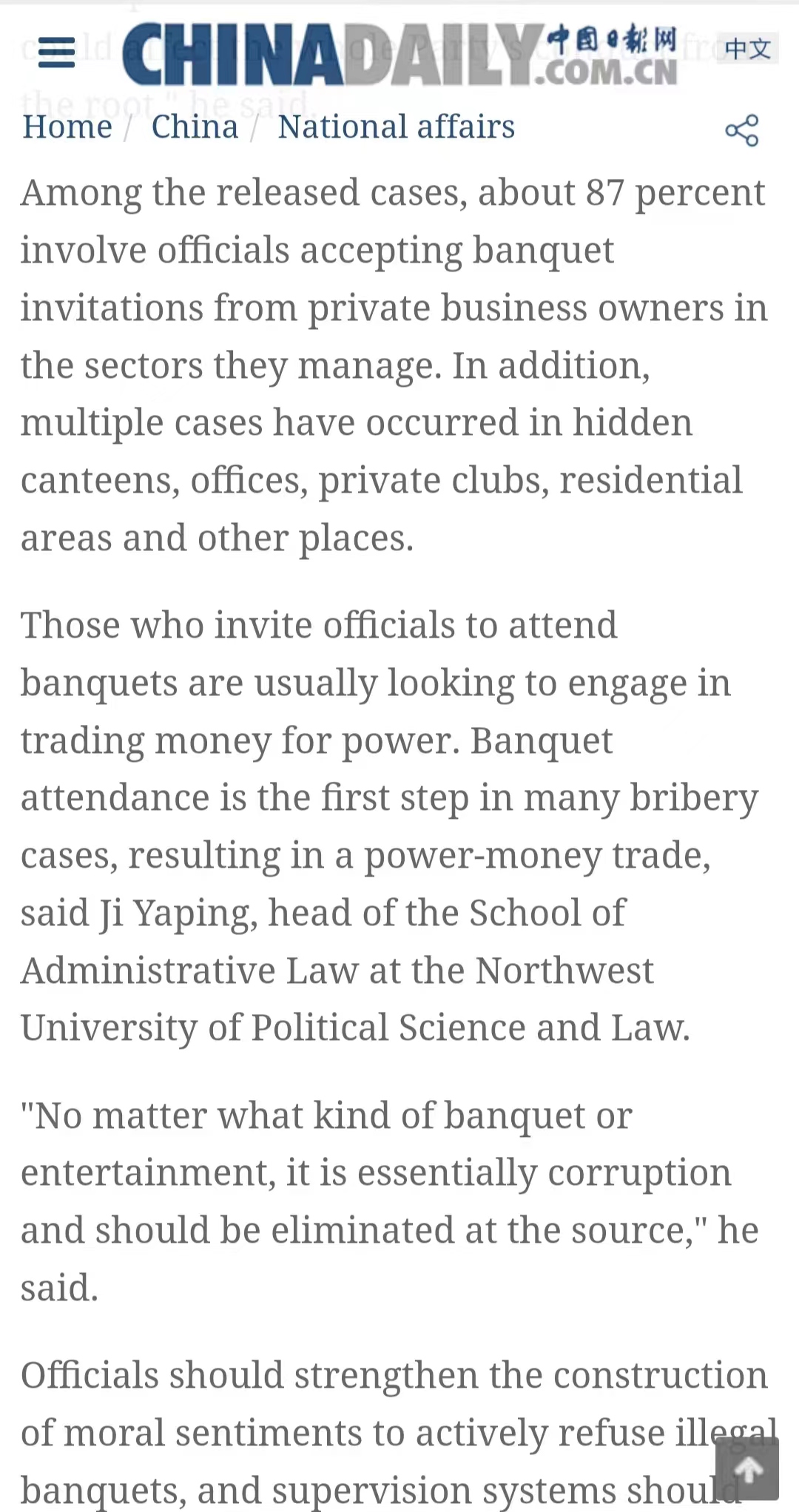 最近,pg娱乐城 姬亚平教授就整治违规吃喝问题接受了中国日报记者的采访,该采访报道于7月11日以英文刊出。